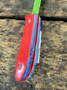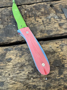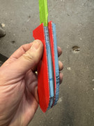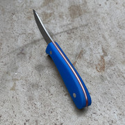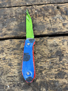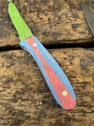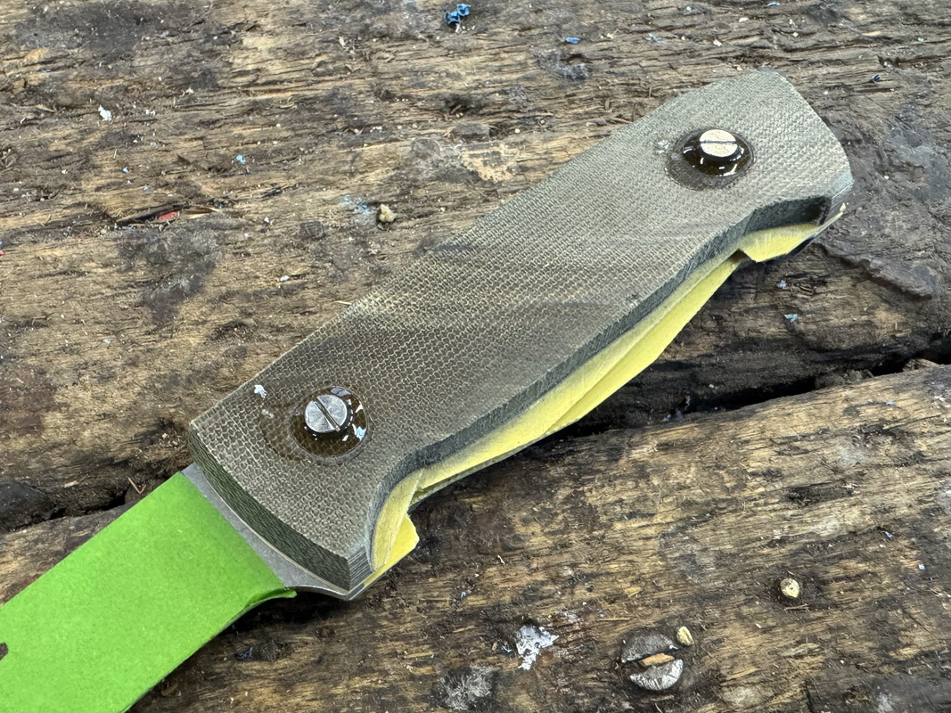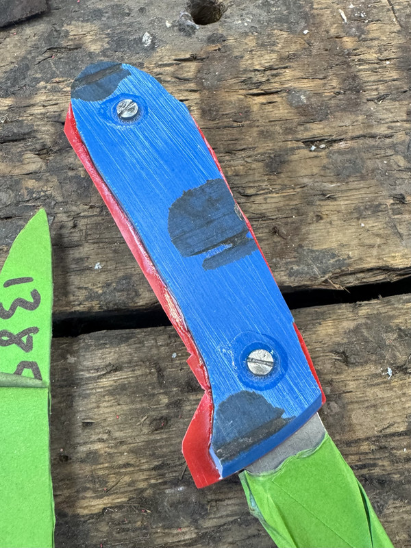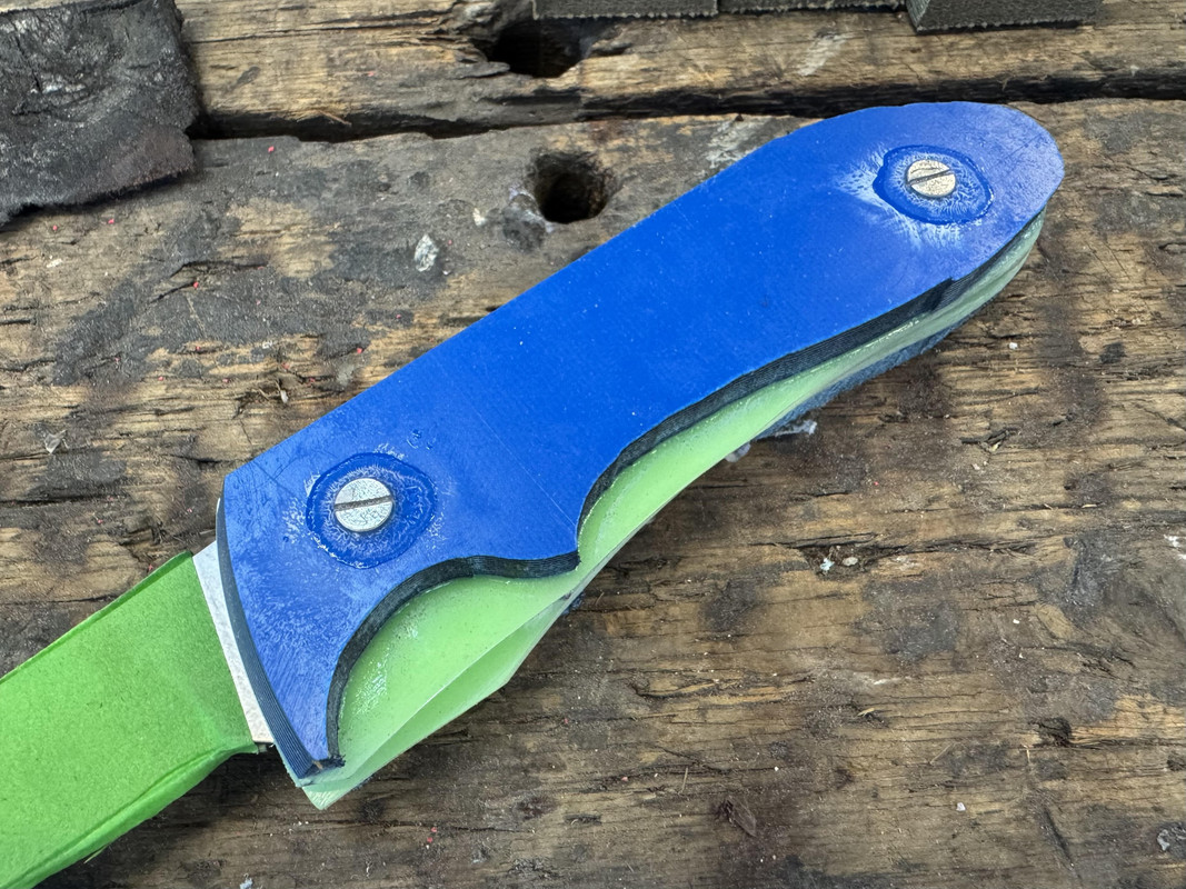 The blue and red knife you see up there, like an idiot, when I bonded the scales to the liners (with the thin CA), I created two RH scales. I know that they would not come apart, no chance, no way. I suspect the G10 might delaminate first. With epoxy, I would have got them apart.