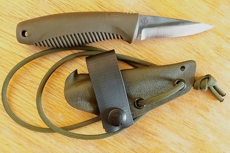 It looks a beaut for carving. The sheath, is it an Armatus, it looks very much like one I got for my Brisa Necker 70. My Necker hasn’t got very good retention in it because of the handle profile, which is a real shame as it’s a really good sheath otherwise. I have one for my Benchmade Bushcrafter, which is brilliant, it clicks with a very positive click- your knife looks like it will as well. I really like the end of blade profile, it looks perfect. I can see an addition to my collection happening!:p