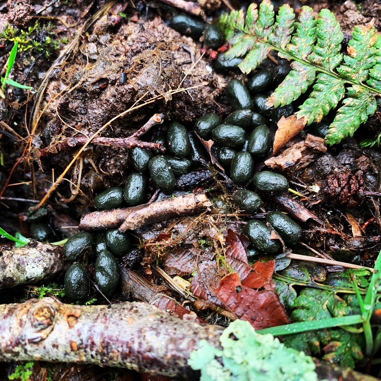 Animal droppings, which provide insights into diet, health, and time of passage.